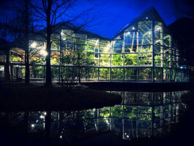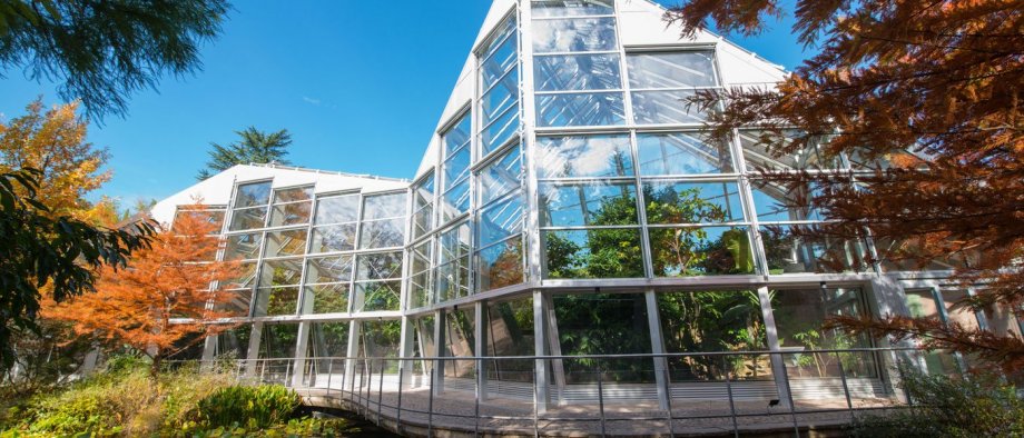 Glasgewächshaus in den Gärten von Schloss Trauttmansdorff, Meran